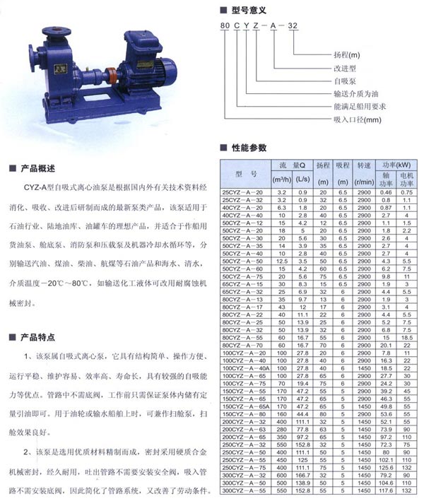 CYZ自吸離心油泵是根據(jù)國內(nèi)外有關技術資料經(jīng)消化、吸收、改進后研制而成的新泵類產(chǎn)品,該泵適用于石油行業(yè)、陸地油庫、油罐車的理想產(chǎn)品,并適合于作船用貨油泵、艙底泵、消防泵和壓載泵及機器冷卻水循環(huán)等,分別輸送汽油、煤油、柴油、航煤等石油產(chǎn)品和海水、清水,介質(zhì)溫度-20℃-80℃,如輸送化工液體可改用耐腐蝕機械密封。